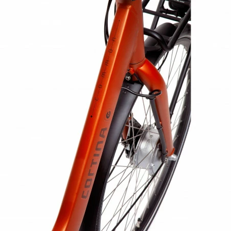 Le CORTINA E-Common 7v est un vélo électrique hollandais. En effet, nous retrouvons le porte bagage avant et arrière, offrant de grandes possibilités de chargement. Avec des caisses de transport, pour faire vos courses, ou en ajoutant un siège vélo enfant, afin d’emmener votre bambin partout avec vous. Un vélo électrique, pour le moins robuste, sans oublier pour autant le style. Une géométrie de cadre à enjambement bas, afin de facilité son usage au quotidien, pour les dames, mais aussi pour les messieurs. L’aluminium est de rigueur combinant robustesse et légèreté.