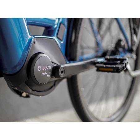 Un cadre léger en Alpha Smooth aluminium ouvert qui renferme une batterie de 400 Wh, un moteur Bosch Active Line Plus qui offre une assistance pouvant atteindre 25 km/h et un dispositif de commande Intuvia. Une transmission Shimano Nexus à 7 vitesses internes fiable et peu exigeante en entretien, une fourche télescopique et une tige de selle suspendue, de puissants freins à disque hydrauliques, un phare avant et feu arrière intégré, un porte-bagages arrière avec fixation MIK sûre et facile à utiliser, des garde-boue, des poignées ergonomiques et une clé unique pour la batterie et l’antivol en U inclus.