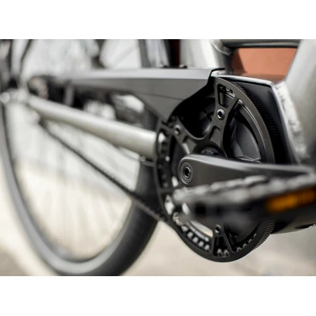 Un cadre léger en Alpha Smooth aluminium ouvert qui renferme une batterie de 500 Wh, un moteur Bosch Active Line Plus qui offre une assistance pouvant atteindre 25 km/h et un contrôleur Purion. Un entraînement par courroie Gates fiable avec un moyeu Shimano Nexus à 7 vitesses internes fiable et peu exigeant en entretien, une fourche télescopique et une tige de selle suspendue, de puissants freins à disque hydrauliques, un phare avant et feu arrière intégré, un porte-bagages arrière avec fixation MIK sûre et facile à utiliser, des garde-boue, des poignées ergonomiques et une clé unique pour la batterie et l’antivol en U inclus.